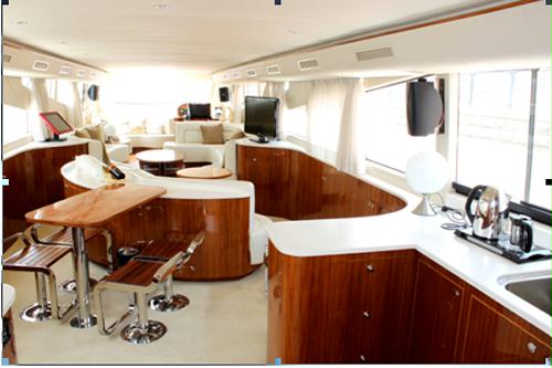 外表低调,内有乾坤,尊贵、优雅的船体散发着浪漫气息。每次可接纳20人左右聚会,船内设施完备,KTV欢唱系统、红酒柜等一应俱全。配以茶憩水果等休闲小点,加之尊贵服务,以及专业水手的保驾护航,在娓娓道来的解说中惬意游行。