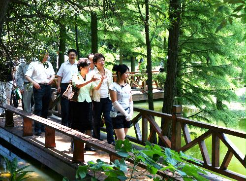 日前,台湾海峡两岸观光旅游协会会长赖瑟珍女士率团来江苏实地考察2011年第二届江苏•台湾灯会场地,周乃翔局长、袁丁副局长陪同考察。